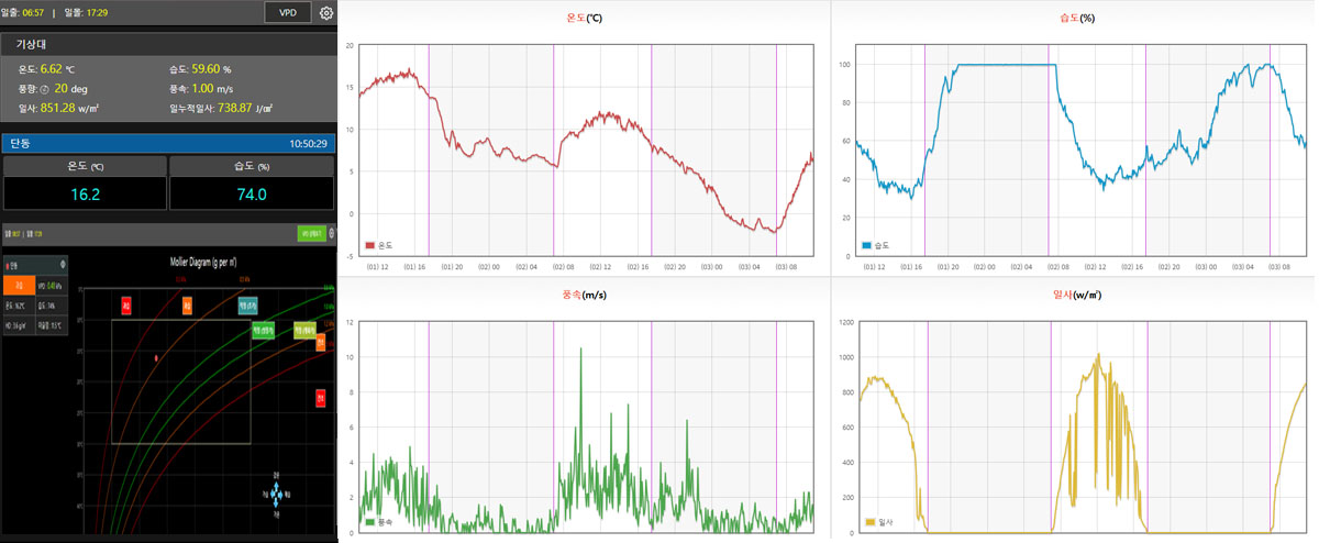 외부날씨 데이터를 실시간 확인하고 환경제어에도 활용할 수 있도록 했다.